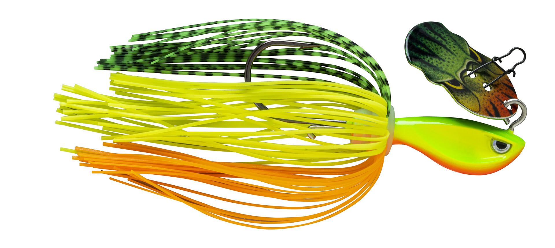 The Rap-V Perch Bladed Jig combines elements from multiple lures and blends them into a full-sensory attack! Fitted with a welded silicone skirt and a uniquely printed and snag-reducing blade, this lure swims with irresistible flash and vibration. The versatile and easy-to-fish Rap-V Perch Bladed Jig is effective in any type of situation. The lure’s construction allows for using a trailer for increased volume.