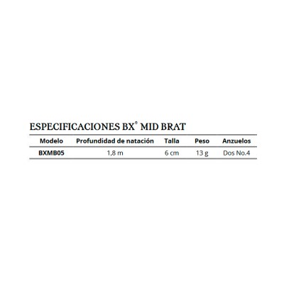BX® Brat karakterizira heavy-duty copolymer oklop koji omogućuje ekstremnu izdržljivost, te ekstra plovna jezgra od balze, savršena za ribolov u plitkome. Specifčnim ga čini i hard-rolling akcija sa tradicionalnim Rapala kockastim kljunom, koji omogućuje savršene otklone u povlačenju