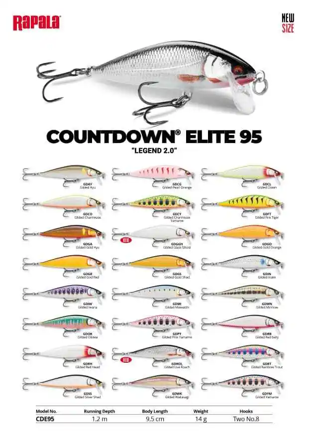 The CountDown Elite harnesses over 80 years of lure making craftmanship into a premium balsa lure. It features the legendary controlled slow-sinking method of the original CountDown®. The new CountDown Elite is built with a modern construction for maximum casting distance and accuracy, improved durability and versatility – and a flutter on the drop. The color patterns combine metallic plating, HD printing and new designs, bringing the look to a totally new level. • Balsa body • Heavy-duty split rings • Wire-through construction • Targeted for Trout and Perch • VMC® 7554 Black Nickel hooks