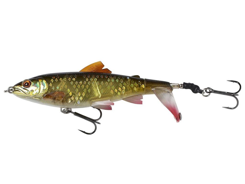 Smash tail English Based on a 3D Scan of a Baby trout, with superb details and a realistic profile. The Turning tail, smash into the water, creating a loud plopping sound, leaving a super wake and bubble trail behind the lure. The small Metal rivet in the tail, enhances the sound and spit calling in the Big predator fish!