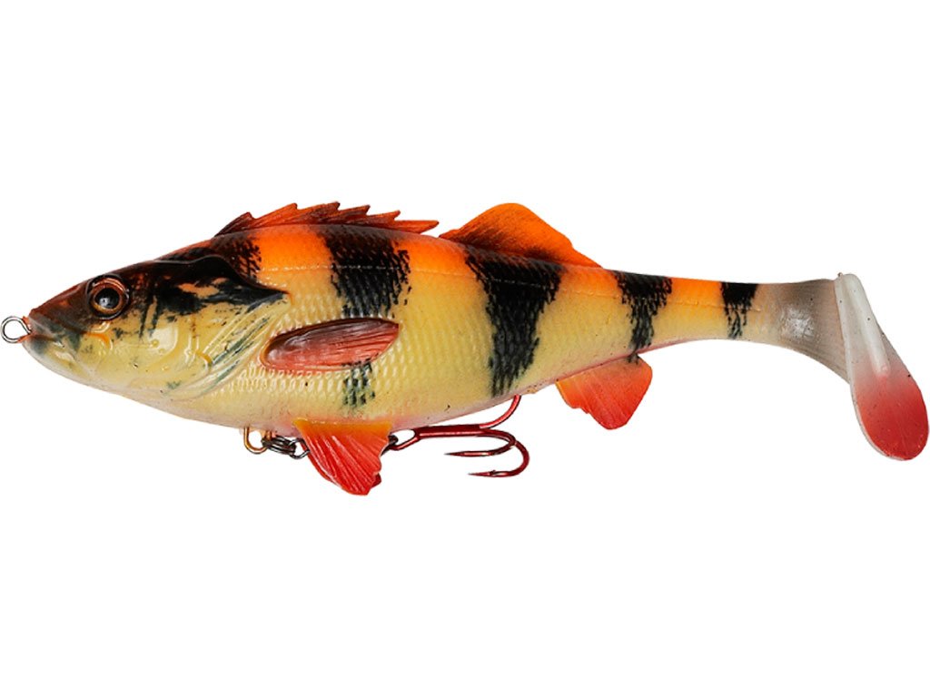 Based on a 3D Scan of a real perch with perfect details and Photo Chrome skin print and added DNA scent! The paddle tail make the lure rock seductively and the rattle in the tail sends out provoking sounds! The 2 smaller sizes is “ready rigged”, with the Belly treble hook mounted on a swivel, so the pike has hard time to throw the hook.