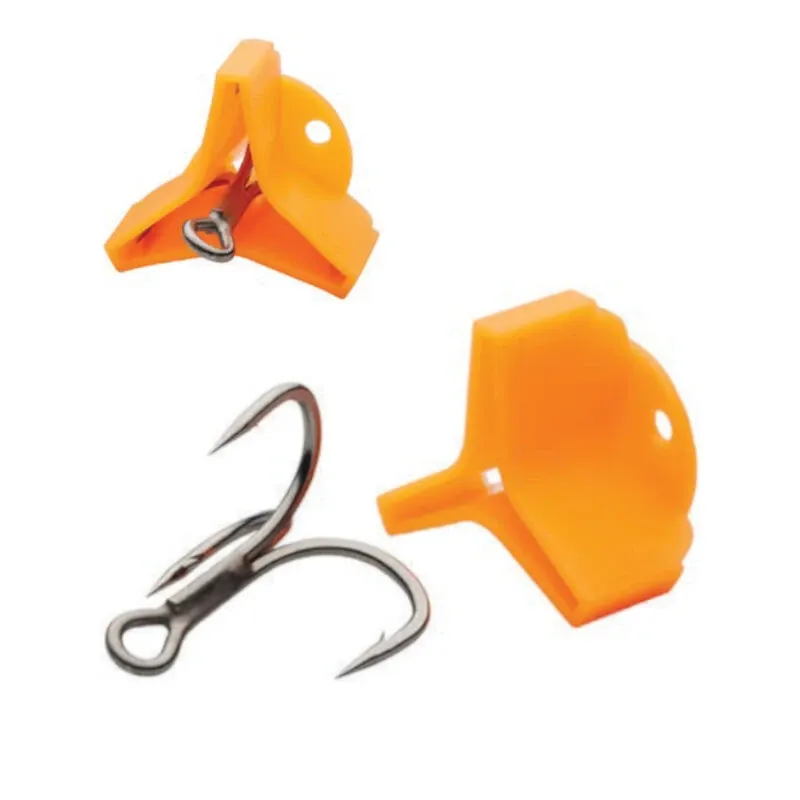 Click on treble hook protectors, that allows you to carry your lures and rigs in bags or in your pocket. Super practical for lure storage and transport, bright Fluo orange, for easy location in case you loose in nature. Make sure to click on the hooks all the way, for safety. Don’t leave on wet hooks, ensure to dry after use.