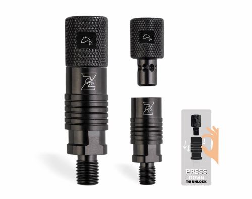 Well-designed quick connector with a universal thread, which works with the help of a lock with a ball bearing and a special shape of the connection that fits together and ensures that it won’t disconnect even during a sudden side pull. Simply screw the bite alarm into the upper part of the connector and mount the lower part onto your rod rest or buzzer bar in the usual way. After finishing your fishing session, simply disconnect the parts and leave them on both the alarm and the rod rest, buzzer bar. or banksticks. On your next trip, just reconnect the parts and you’ll save time and avoid the hassle of screwing everything in. The connector is made entirely of metal, well-crafted, with black finish. Standard threads fit most common fishing rod rests, buzzer bars and banksticks.